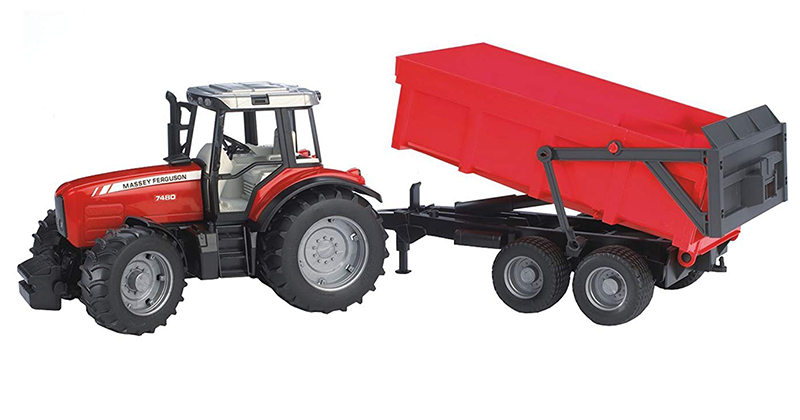 Acquista online trattore giocattolo Bruder Massey Ferguson 7480 con rimorchio ribaltabile. Estremamente realistico e dettagliato in ogni particolare. Dotato di cofano apribile, pneumatici profilati, peso frontale sganciabile e un rimorchio ribaltabile. Questo trattore giocattolo è ideale per il tuo bimbo o per la tua collezione. Questo Massey Ferguson giocattolo è grande 67x16.5x17.5 cm