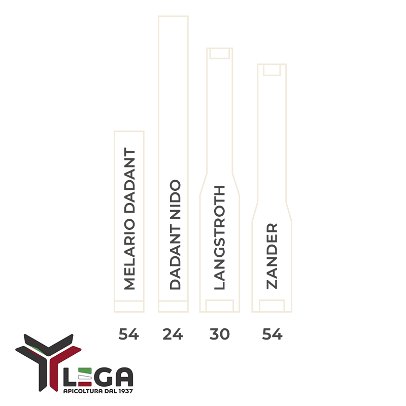 - 54 favi melario dadant, 24 favi dadant nido, 30 favi langstroth, 54 favi zander